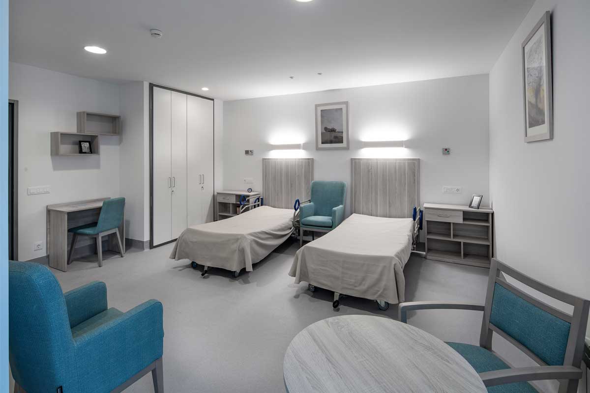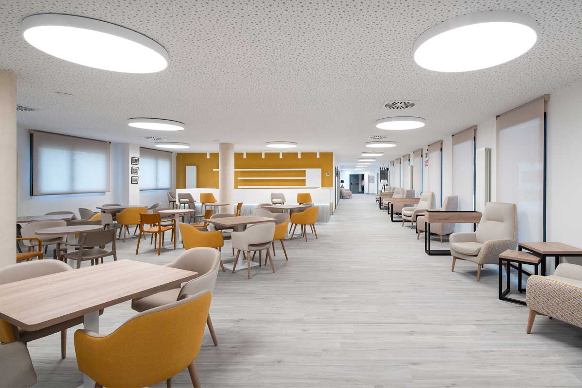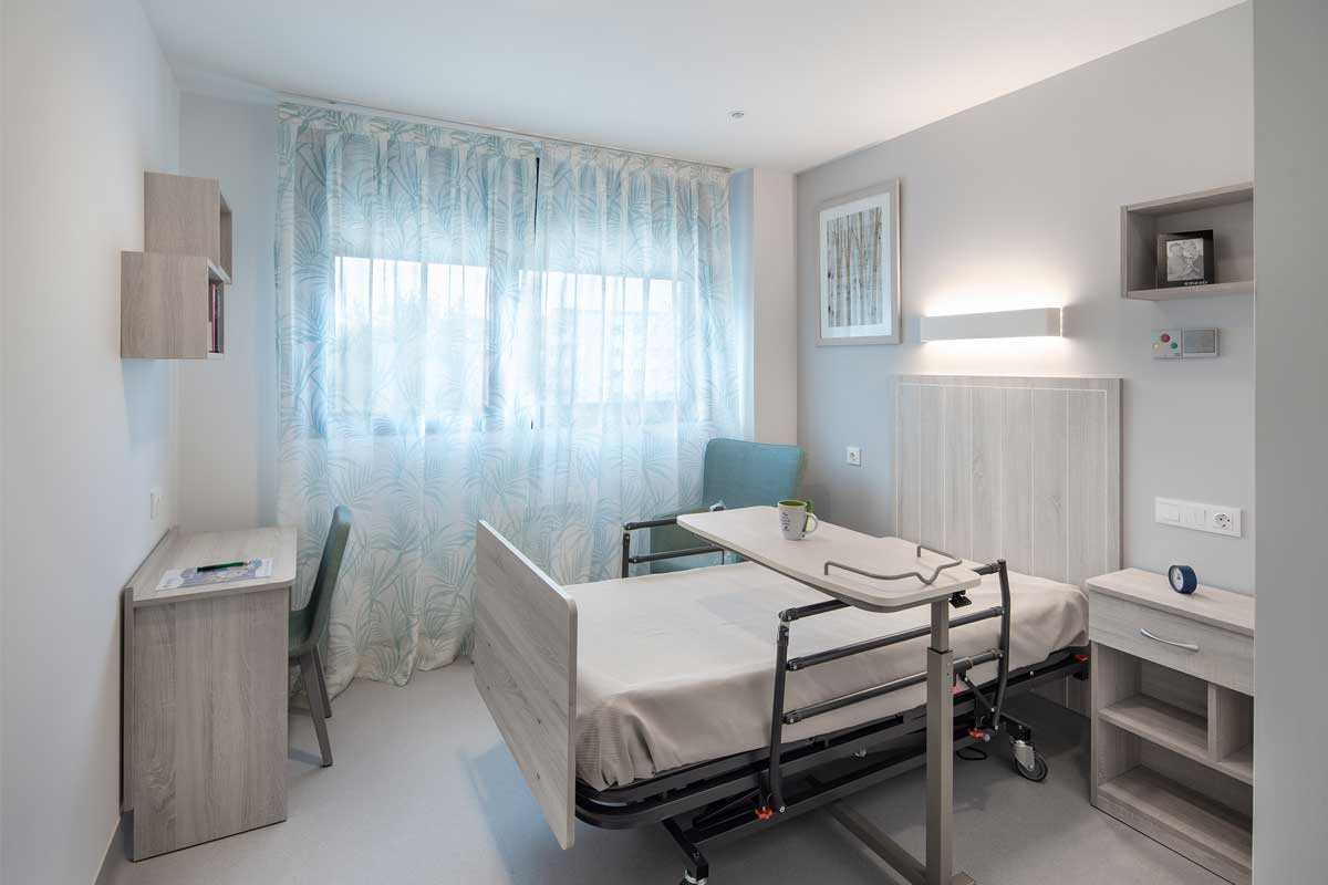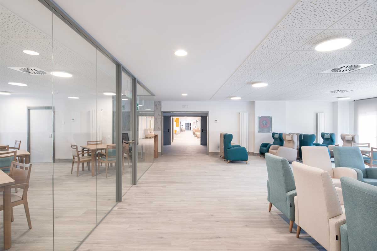 La residencia se organiza en las plantas 1º y 2º, en torno a tres módulos de convivencia, cada uno de los cuales dispone de su zona estar y comedor para servir aproximadamente a unas 15-20 habitaciones. En la planta baja se disponen dos módulos de convivencia y una zona central de servicios con cafetería, capilla, oficinas y zonas administrativas. En la planta sótano se ubicará la cocina, lavandería, gimnasio, despachos médicos, tanatorio y la zona de vestuarios del personal.