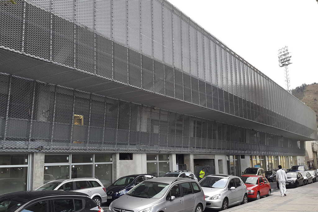Tribunaren egitura nagusia egiteko, hormigoi armatuzko arkupeak baliatu ziren, estalki metalikoarekin.