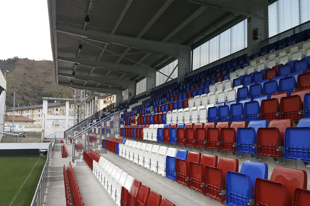 Tribuna berriaren barnean, hiru atal daude: mendebaldekoa, erdikoa eta ekialdekoa. Mendebaldekoan, ez dira aprobetxatu Santa Ines kalearen maila berean dauden lokalak, harmailen azpikoak. Erdikoan, sartzeko eta husteko eskailerak daude. Eta ekialdekoan, harmailen azpiko lokalei etekina aterako zaiela aurreikusi zen, Indalecio Oianguren kalearen maila berean; taberna edo edo denda gisa erabiltzeko aukera zegoen.
