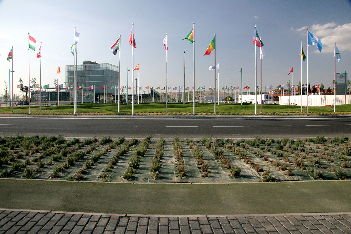 Aldez aurretik, eraiste-lanak eta saneamendu-, drainatze-, hornidura-, argiteria- eta telekomunikazio-sareak egin ziren. Ondoren, zoruak eta zoladurak ipini ziren, pabilioira lurpetik sartu eta irteteko instalazioak egin ziren, eta ureztatze-sarea, seinale horizontalak eta bertikalak, semaforoak, lorezaintzako elementuak, eta hiri-altzariak jarri ziren.