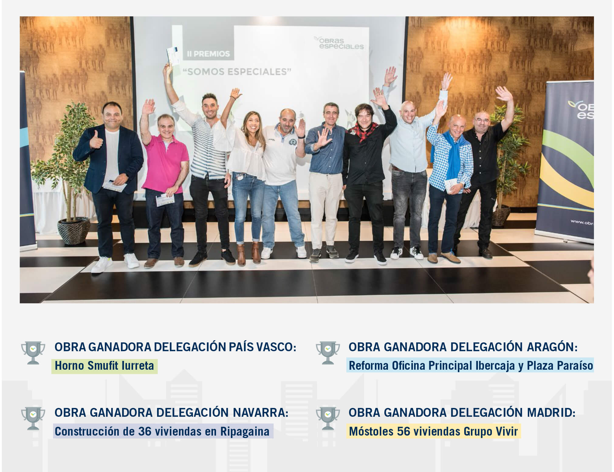 El pasado 22 de septiembre tuvo lugar la segunda entrega de Premios “Somos Especiales” a aquellas obras que han destacado el último año por aspectos como: orden y limpieza, reciclaje, señalética (residuos, accesos, cargas…), aspectos de prevención, e imagen corporativa.